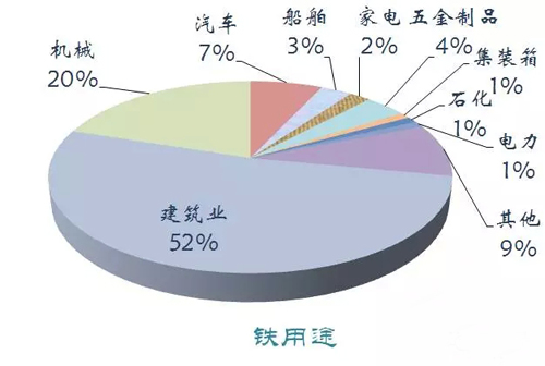 鋼鐵是工業(yè)化過程中最重要的原材料之一,我國消費鋼鐵最主要的部門是建筑行業(yè)。2014年我國鐵礦石儲量230億噸,產(chǎn)量15億噸。