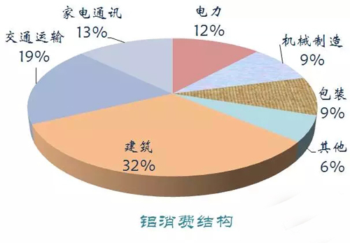 鋁主要應用于建筑、交通運輸、家電通訊、電力、包裝和機械制造等領(lǐng)域。2014年我國鋁土礦儲量3250萬噸,產(chǎn)量2330萬噸,原鋁消費量2406萬噸。