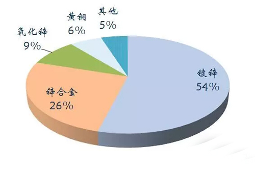 中國鋅消費超過50%用于鍍鋅。2014年我國鋅儲量4300萬噸,產(chǎn)量500萬噸,消費642萬噸。