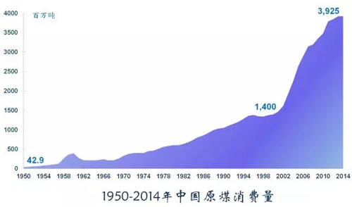 煤炭是中國最重要的能源礦產(chǎn),在能源消費中占比一直高達70%左右,居絕對主導地位,對中國經(jīng)濟發(fā)展具有至關(guān)重要的意義。1950年-2014年,中國原煤消費量激增90倍以上。