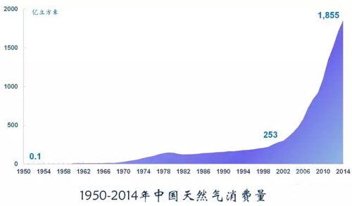 天然氣是最高效、清潔的化石能源,我國天然氣消費從建國時期的0.1億立方米增至2014年的1855億立方米,增長了1800多倍。