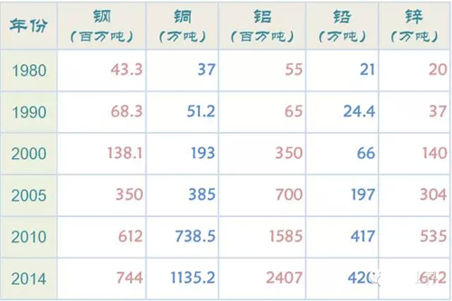 銅是被廣泛應用在電力、家電、機械、建筑、交通、電子通訊等領(lǐng)域。2014年中國銅儲量3000萬噸,產(chǎn)量162萬噸,消費1135萬噸。