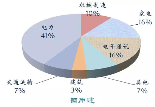 銅是被廣泛應用在電力、家電、機械、建筑、交通、電子通訊等領(lǐng)域。2014年中國銅儲量3000萬噸,產(chǎn)量162萬噸,消費1135萬噸。